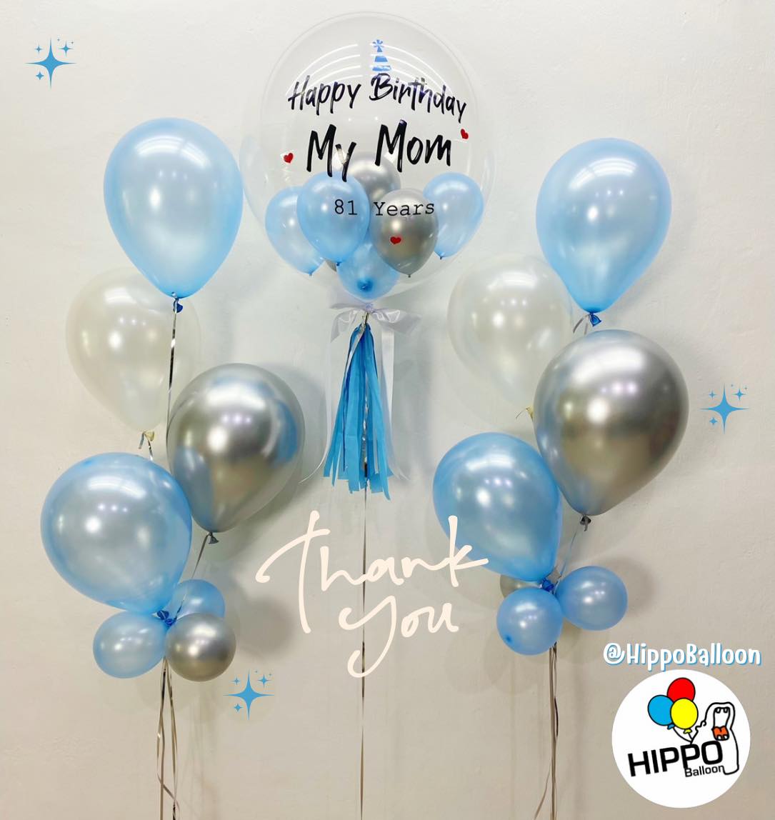 เซทขายดีสุดๆ เรียบๆแต่โดนใจ สาวๆ หนุ่มๆ ในเซตประกอบด้วย Bubble 24 '' สูบฮีเลียมจำนวน 1 ลูก พร้อมติดข้อความตามใจขอบ  และ ช่อลูกโป่ง 12'' 5  ลูกจำวน 2 ช่อ (สีลูกโป่งก็ยังเปลี่ยนได้ตามใจชอบเลยน้า) เก๋ๆ