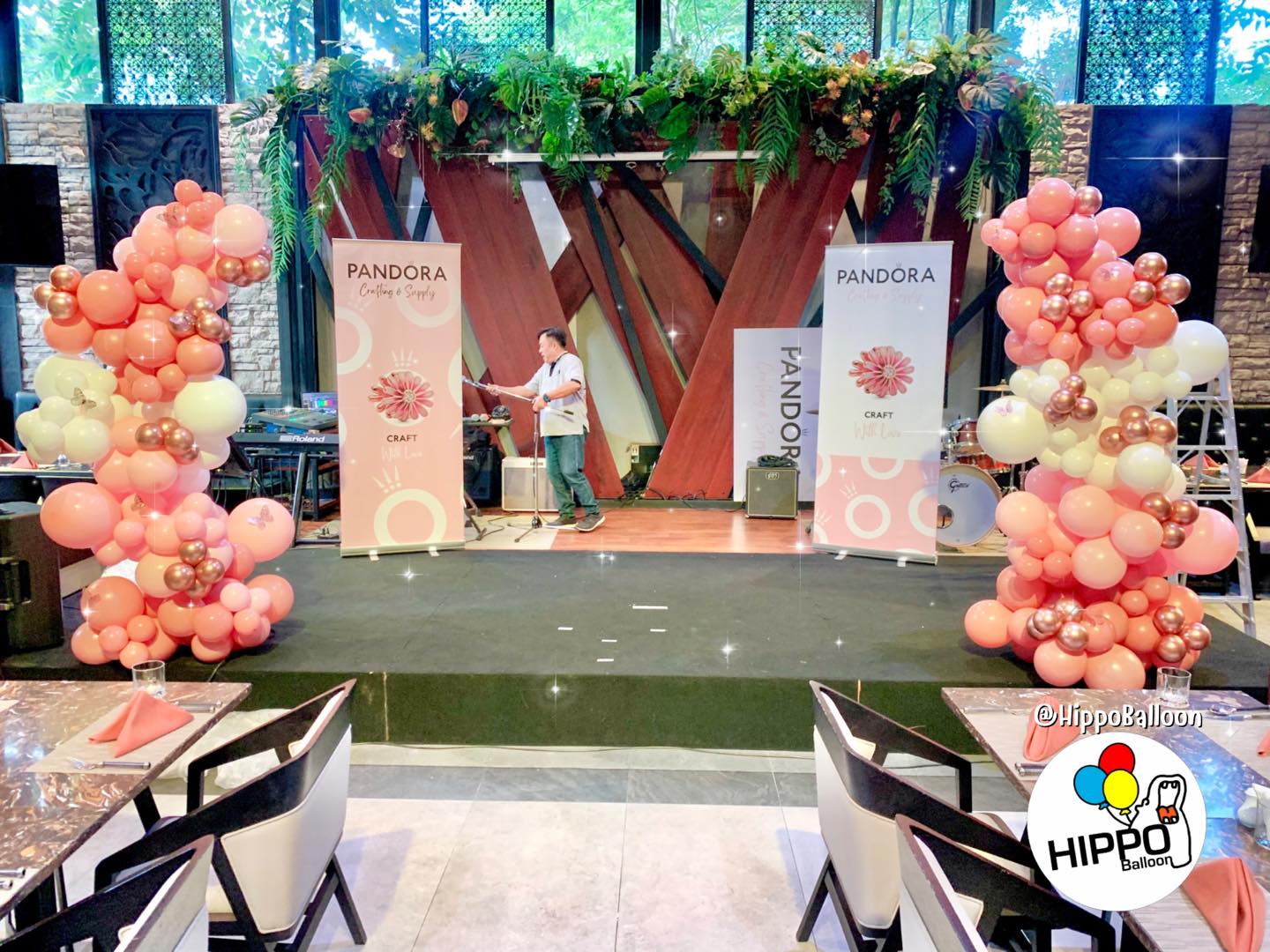 เสาลูกโป่ง Organic ความสูง 2 มตร พร้อมตกแต่งด้วยลูกโป่งฟอยล์ สุดน่ารัก จำนวน 2 เสา