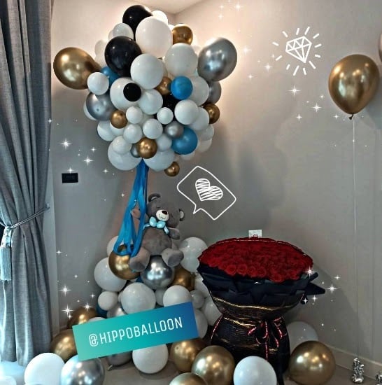 เสาลูกโป่งทรง Hot Air Balloon สุดฮิต สูง 2.5 เมตร พร้อมหมีน้อยขนาด 25" (ไม่รวมดอกไม้) พร้อมลูกโป่งวางพื้น เหมาะสำหรับตกแต่งในงาน Party ต่างๆ หรือ Surprise แฟนก็เจ๋งสุด____Item นี้สุด Cute จริงๆน้า
