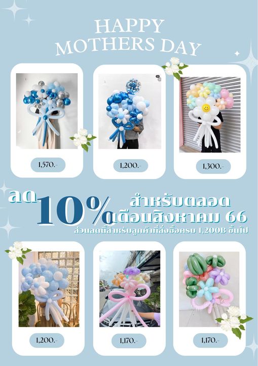 พิเศษตอนรับวันแม่ปีนี้ ด้วยการมอบของขวัญสุดพิเศษให้กับคุณแม่ ทาง Hippo balloon ได้มี campaign promotion สุดพิเศษตอนรับเดือนของคุณแม่คุณทุก ด้วยการมอบส่วนลด 10% ตลอดเดือนสิงหาคม 2566 สำหรับลูกค้าที่สั่งซื้อสินค้าตั้งแต่ 1,200 บาทขึ้นไป สามารถสอบถามรายละเอียดเพิ่มเติมหรือติดต่อเข้ามาสอบถามได้ทางเบอร์ของร้านที่ได้ลงไว้ ขอส่งความสุขให้กับคุณแม่ทุกคนค่ะ